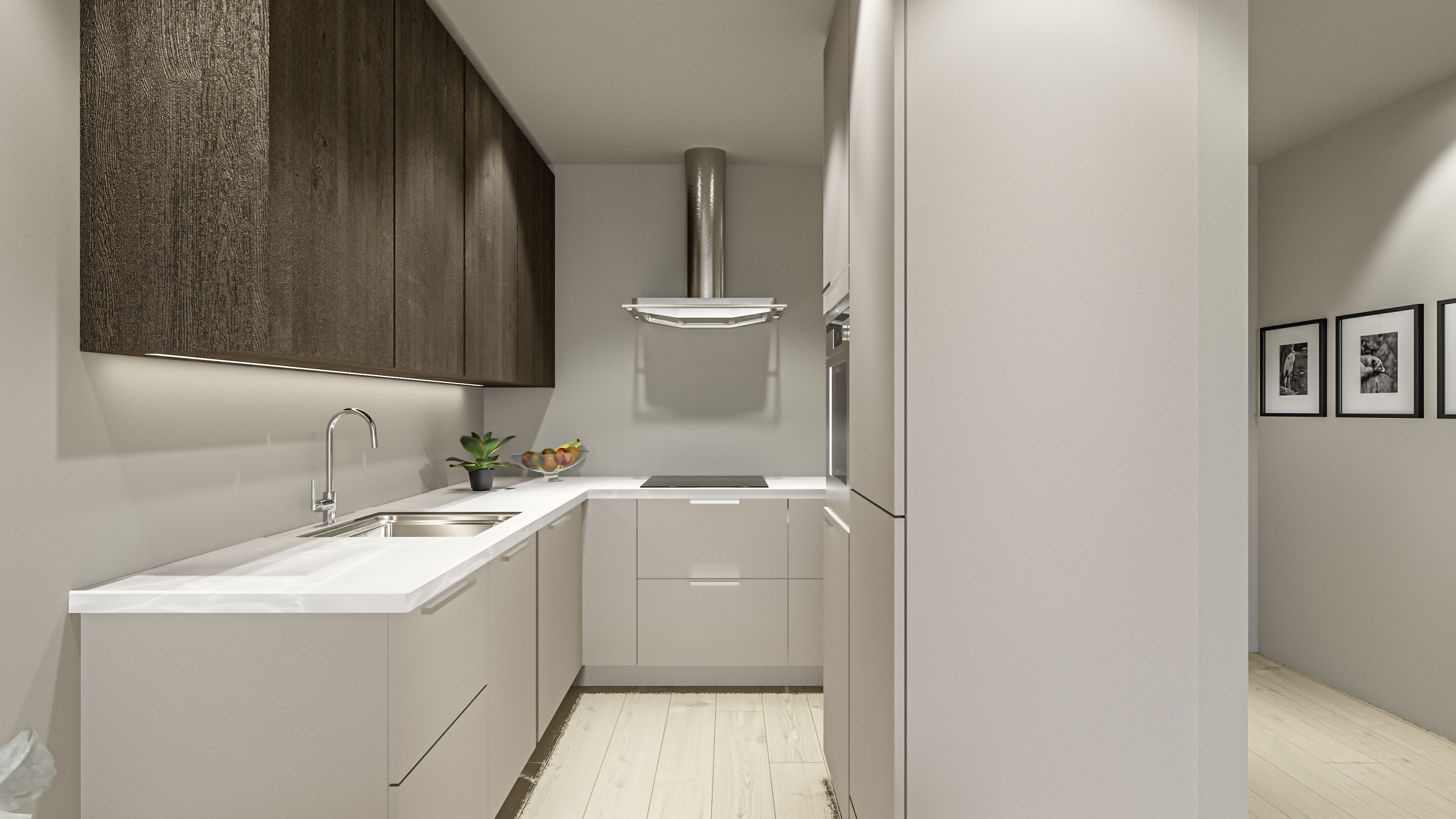 Úr forstofu er komið inn í 30,6 fm alrými með eldhúsi, borðstofu og stofu þaðan sem gengið er út á svalir/verönd. Baðherbergi er flísalagt og með sturtu.